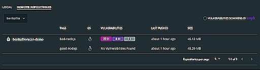 When you scan that aforementioned bad-nodejs image via the command line, you’ll uncover the same vulnerabilities found within Docker Hub: