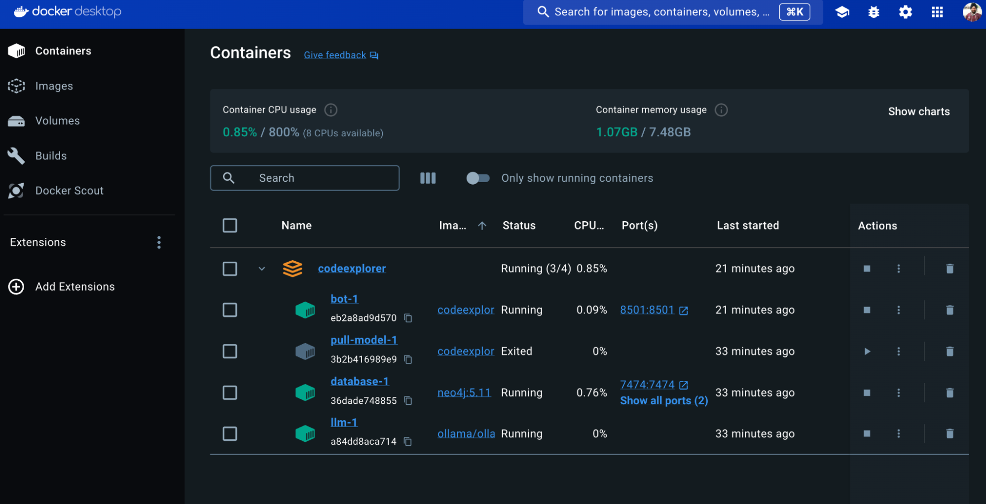 ✔ Container codeexplorer-pull-model-1 Created 0.1s