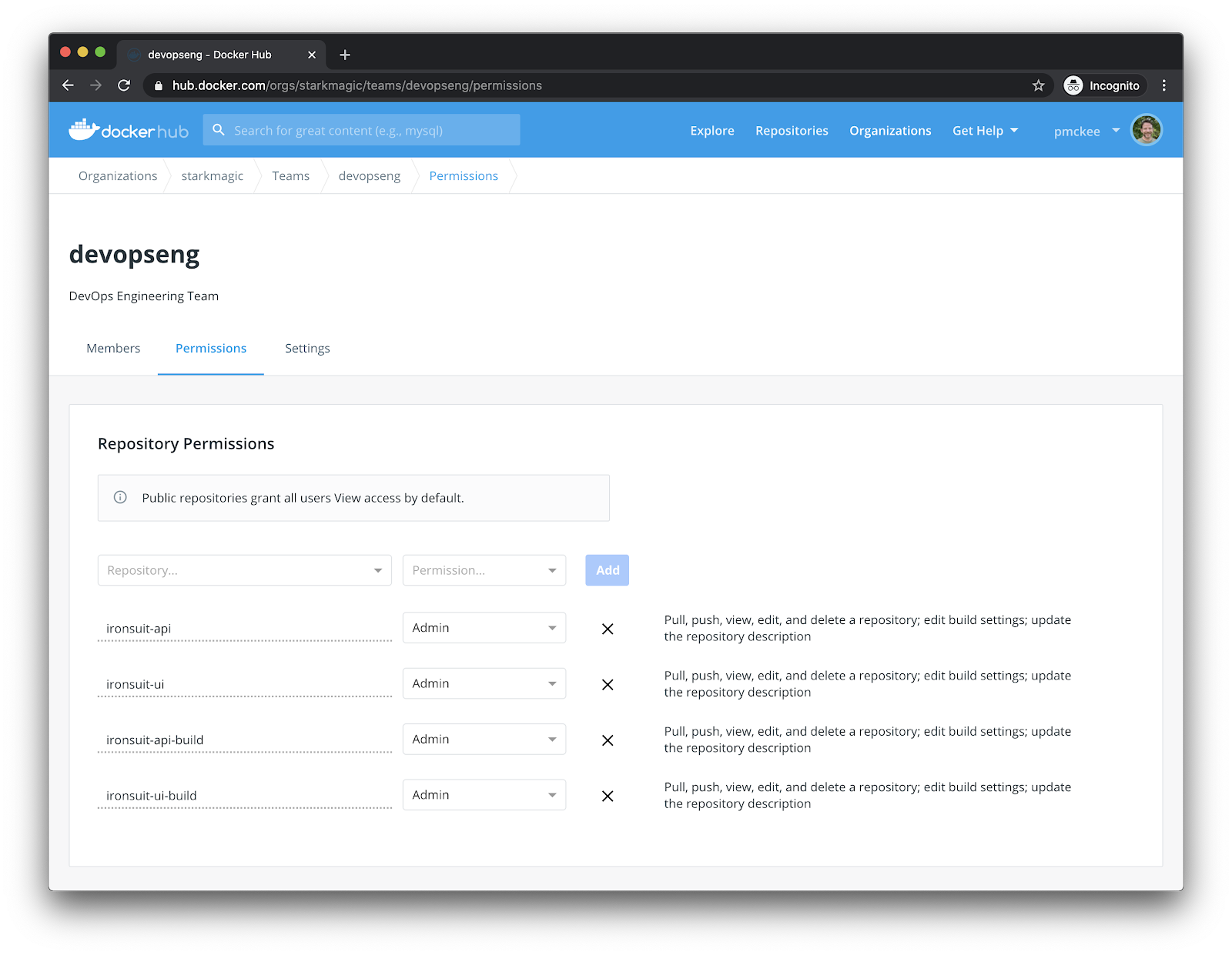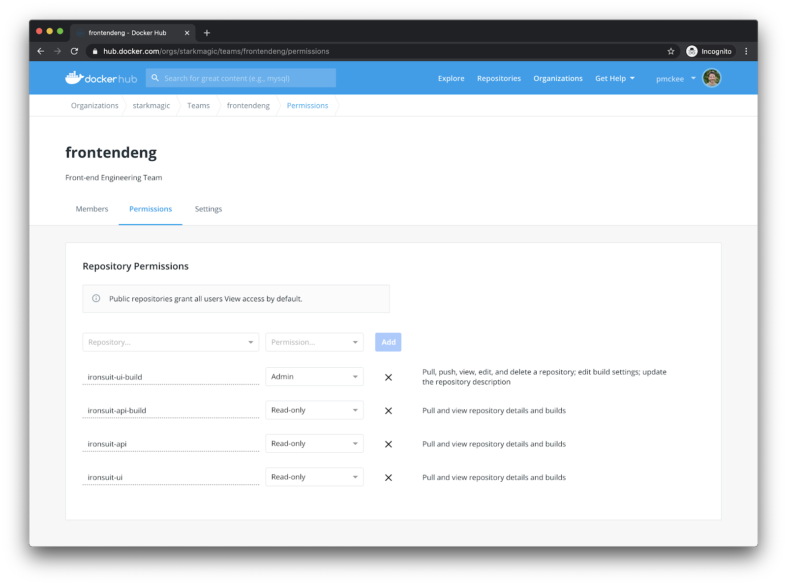Okay, now that we have our Organization and Teams set up. Let’s configure permissions for our image repositories.