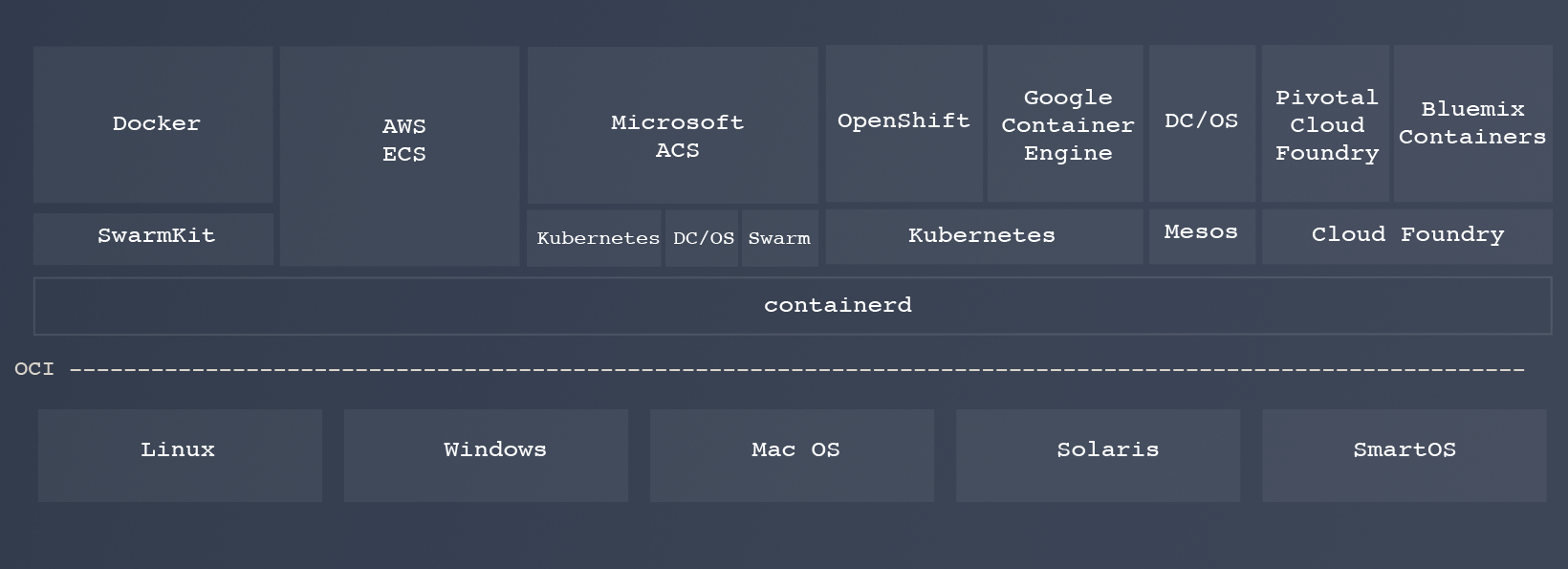 When containerd 1.0 implements that scope, in Q2 2017, Docker and other leading container systems, from AWS ECS to Microsoft ACS, Kubernetes, Mesos or Cloud Foundry will be able to use it as their core container runtime. containerd will use the OCI standard and be fully OCI compliant.