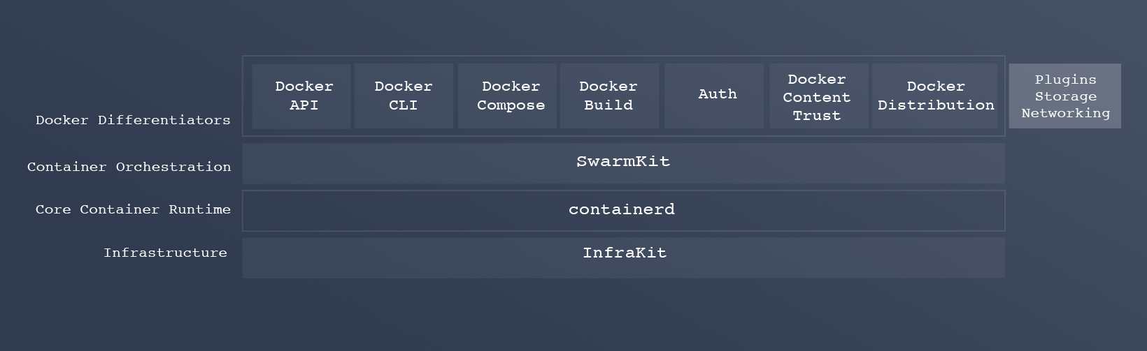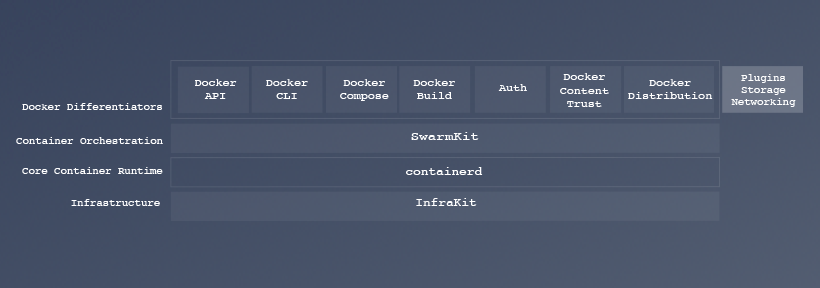 Over the past 3 years, as Docker adoption skyrocketed, it grew into a complete platform to build, ship and run distributed applications, covering many functional areas from infrastructure to orchestration, the core container runtime being just a piece of it. For millions of developers and IT pros, a complete platform is exactly what they need. But many platform builders and operators are looking for “boring infrastructure”: a basic component that provides the robust primitives for running containers on their system, bundled in a stable interface, and nothing else. containerd is component that they can customize, extend and swap out as needed, without unnecessary abstraction getting in their way and built to provide exactly that.