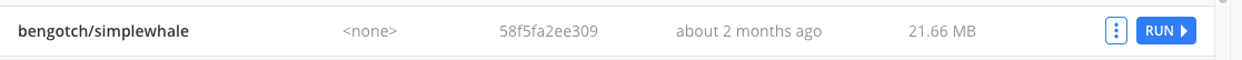 Now I have all these images, I can have a go at running one of them.I will go for my standard demo my simple Whale, when I hover over the image line I can see I get two new buttons, I am going to start off by clicking ‘run’