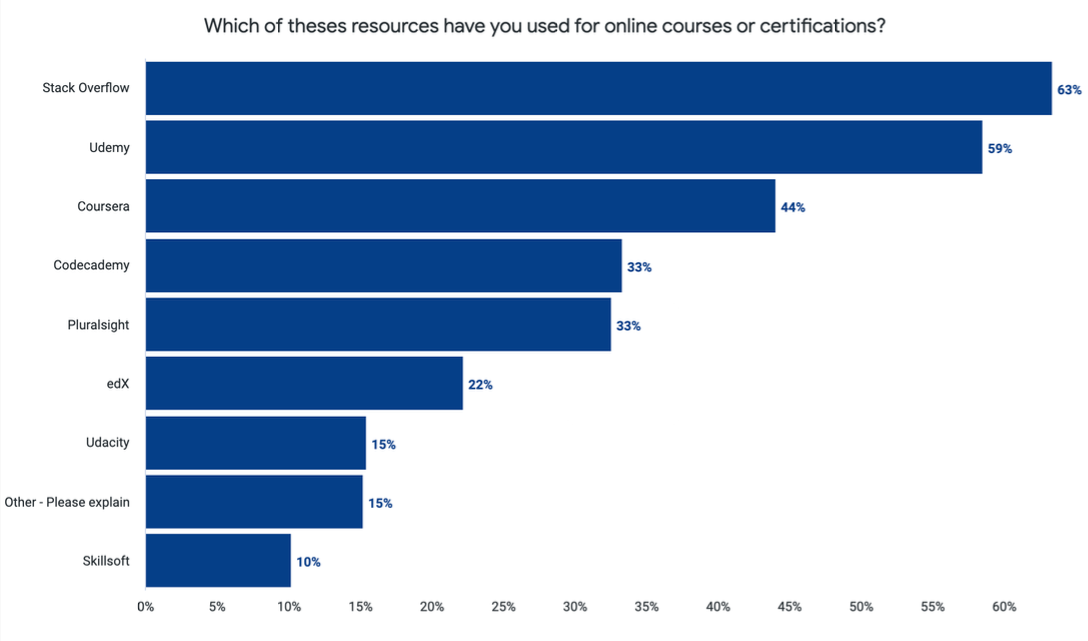 また、 回答者の59% がオンラインコースと認定資格にUdemyを使用していることもわかったため、 Udemyと提携 して、Dockerの学習と使用を可能な限り最高かつ最も合理化されたエクスペリエンスにしました。