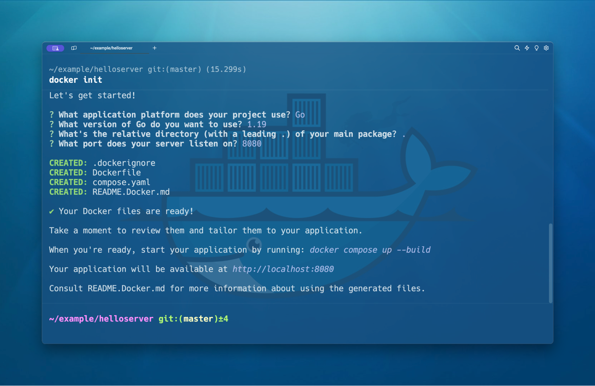 当初は、Docker 4のベータ版でリリースされました。18では、 docker init いくつかの機能強化が加えられています。 docker init は、プロジェクト内のDockerリソースの初期化を支援するコマンドラインユーティリティです。 Dockerfile、Compose ファイル、および .dockerignore プロジェクトの性質に基づいてファイルを作成し、Docker構成に関連するセットアップ時間と複雑さを大幅に削減します。