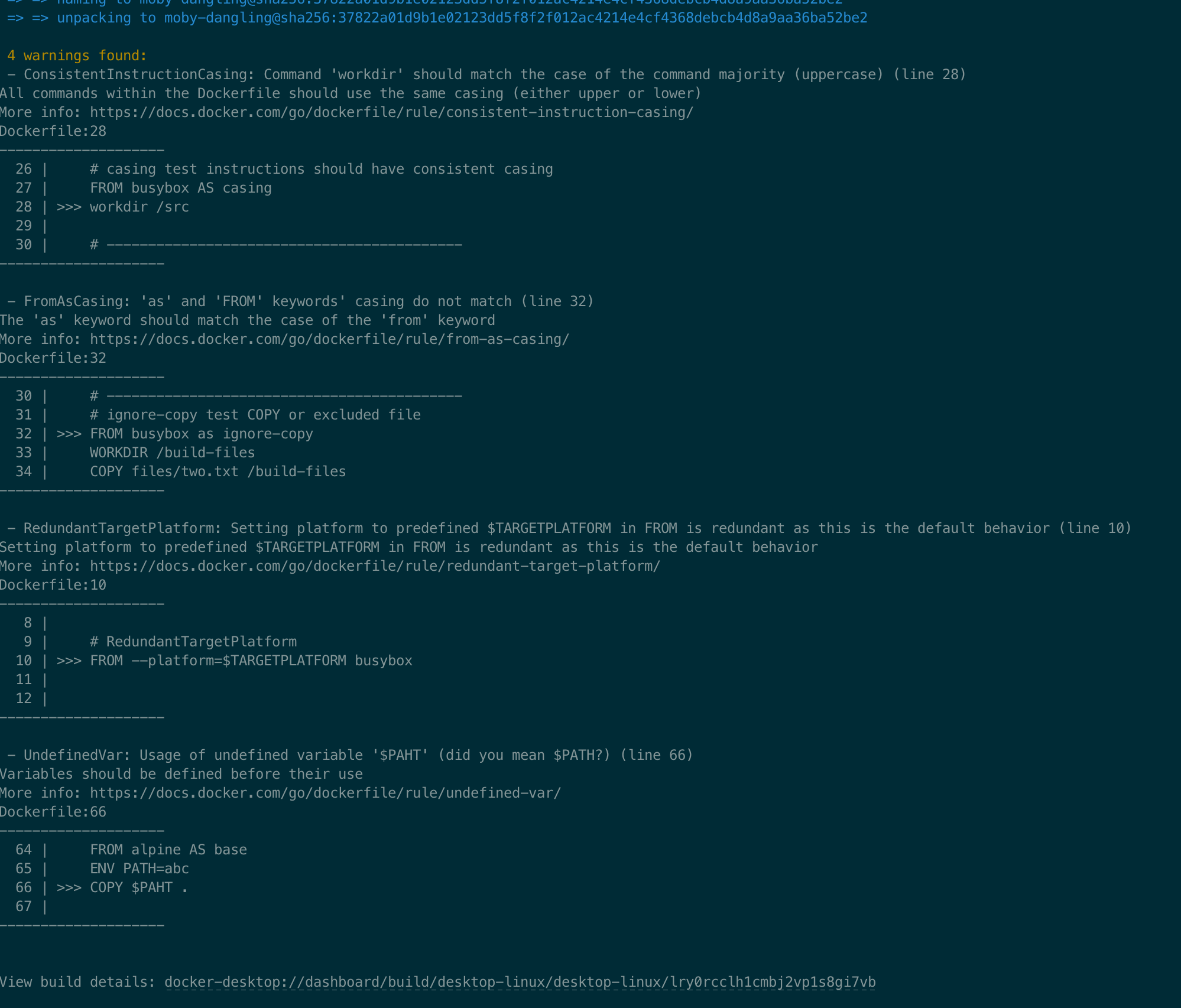 Docker Desktop ã® [ãã«ã] ãã¥ãŒã§ã¯ããã«ãèŠåã®åºåã確èªã§ããŸãã Dockerfile ã§èŠåã®åå ãç¹å®ããããããè¿ éã«è§£æ±ºããæ¹æ³ãçè§£ããã®ãç°¡åã«ãªããŸããã