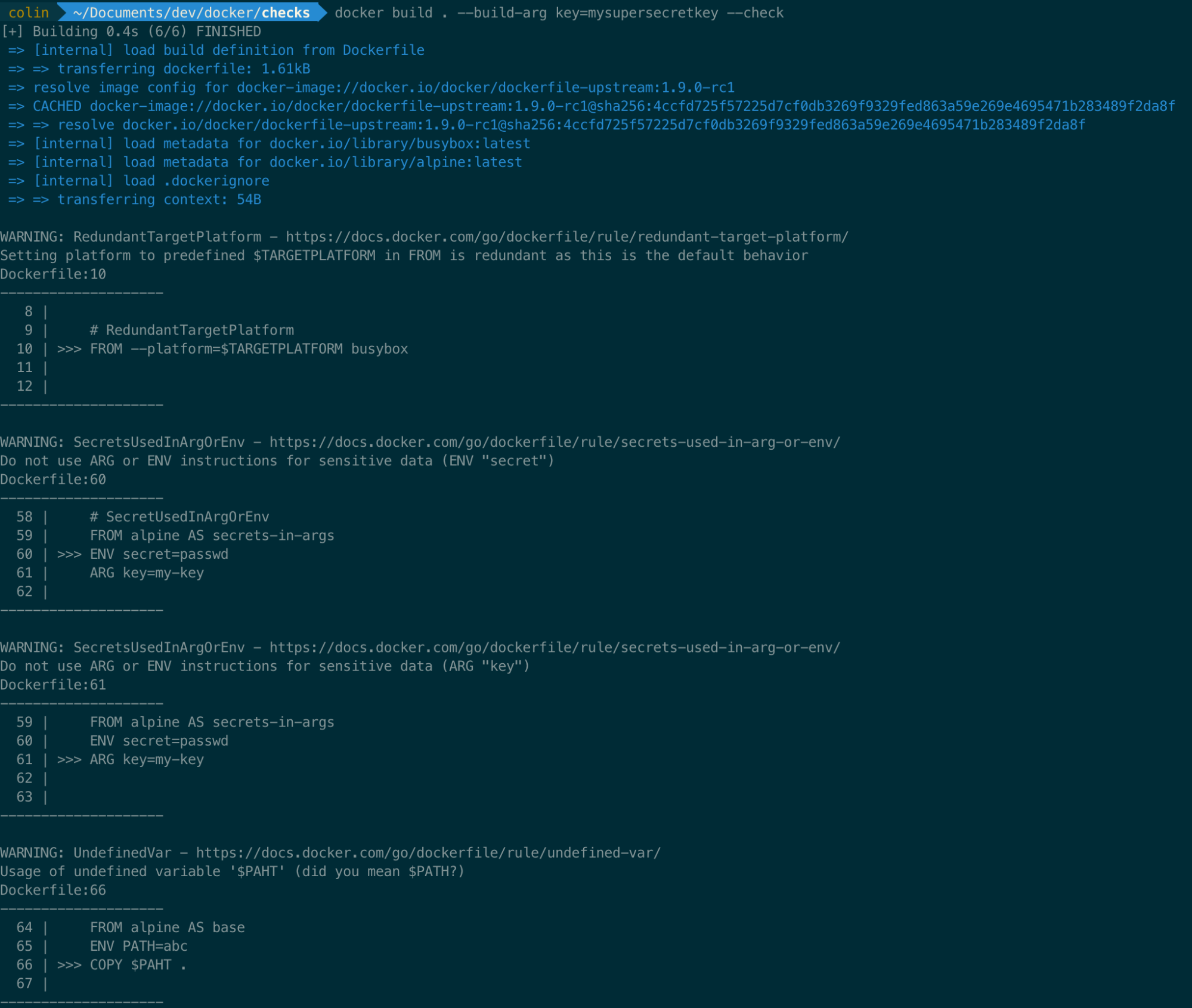 ±æããåã«è©äŸ¡ããããšããå§ãããŸãã docker buildãå®è¡ãããšãDockerfile ã®åé¡ãšèŠåã®æŠèŠããããããã«ãªããŸããã