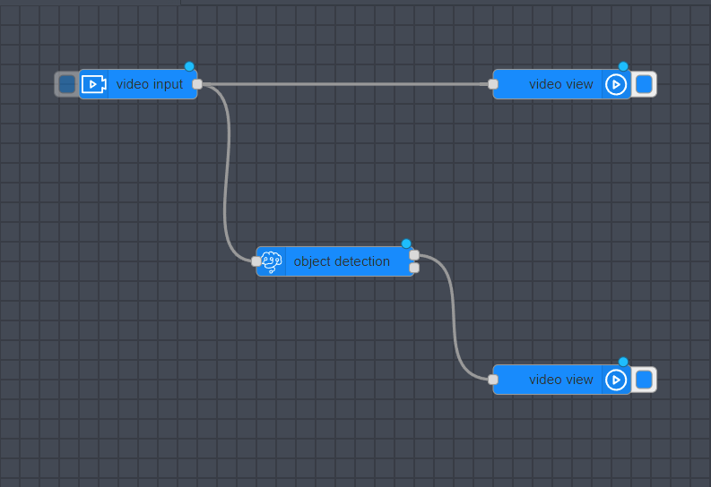 組み込みノード (video input、、 detectionおよび video view) がパレットに表示されます。