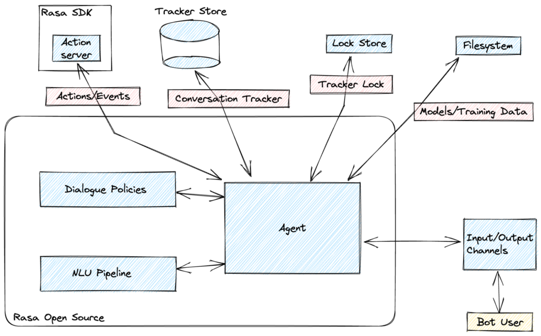 Rasa は、開発者が会話型AIチャットボットを構築およびデプロイできるようにし、柔軟なアーキテクチャと強力な対話理解機能を提供します(図 1)。