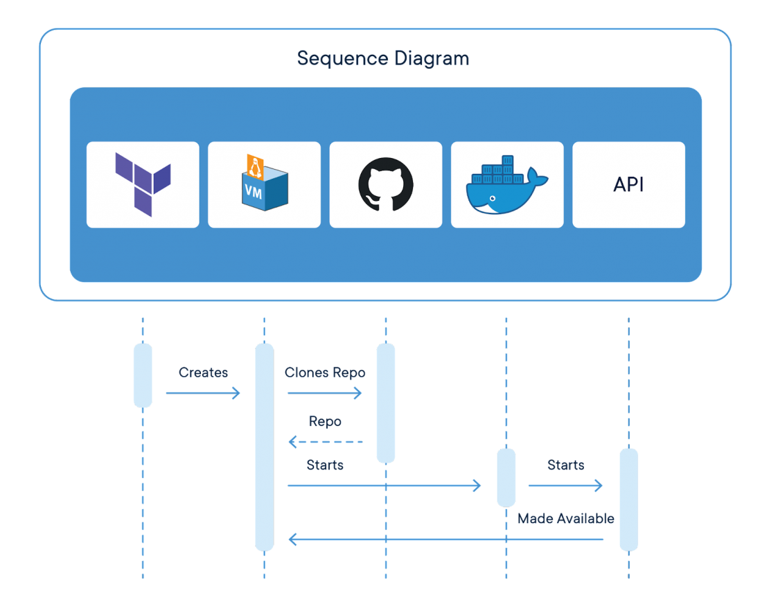 このシーケンス図は、API をデプロイするプロセス全体で実行される手順を示しています。