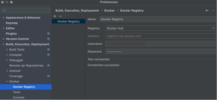 次に、[OK]をクリックします。 Docker デーモンと Docker レジストリ接続は、IDE の下部の [サービス] ペインに表示されます。