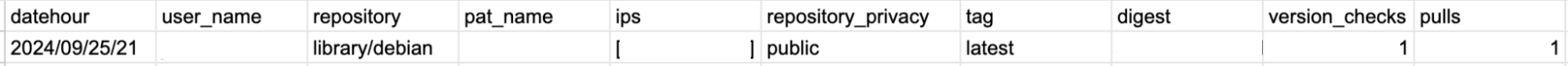 Docker Hub の Usage ダッシュボードでは、pull count、リポジトリ名、IP アドレス、バージョン チェックなどのメトリクスを含むダウンロード可能な CSV レポートなど、使用状況データを包括的に表示できます (図 2)。 このきめ細かなアプローチにより、組織は貴重なインサイトとトレンドデータを取得し、チームのワークフローを最適化し、ポリシーを通知することができます。