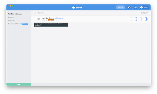 Dockerダッシュボードは、使用しているイメージがAppleシリコンのアーキテクチャと一致しない場合に警告するようになりました。 Apple SiliconでDesktopを使用していて、イメージがエミュレーションによって qemu 実行されている場合 amd64 、パフォーマンスが低下したり、クラッシュしたりする可能性があります。マルチアーキテクチャ イメージの使用を促進していますが、使用しているイメージがマシンのネイティブ アーキテクチャと一致しないため、エミュレーションで実行されている場合は、そのイメージを確実に認識する必要があります。 この場合、[コンテナー/アプリ] ページに警告が表示されます。