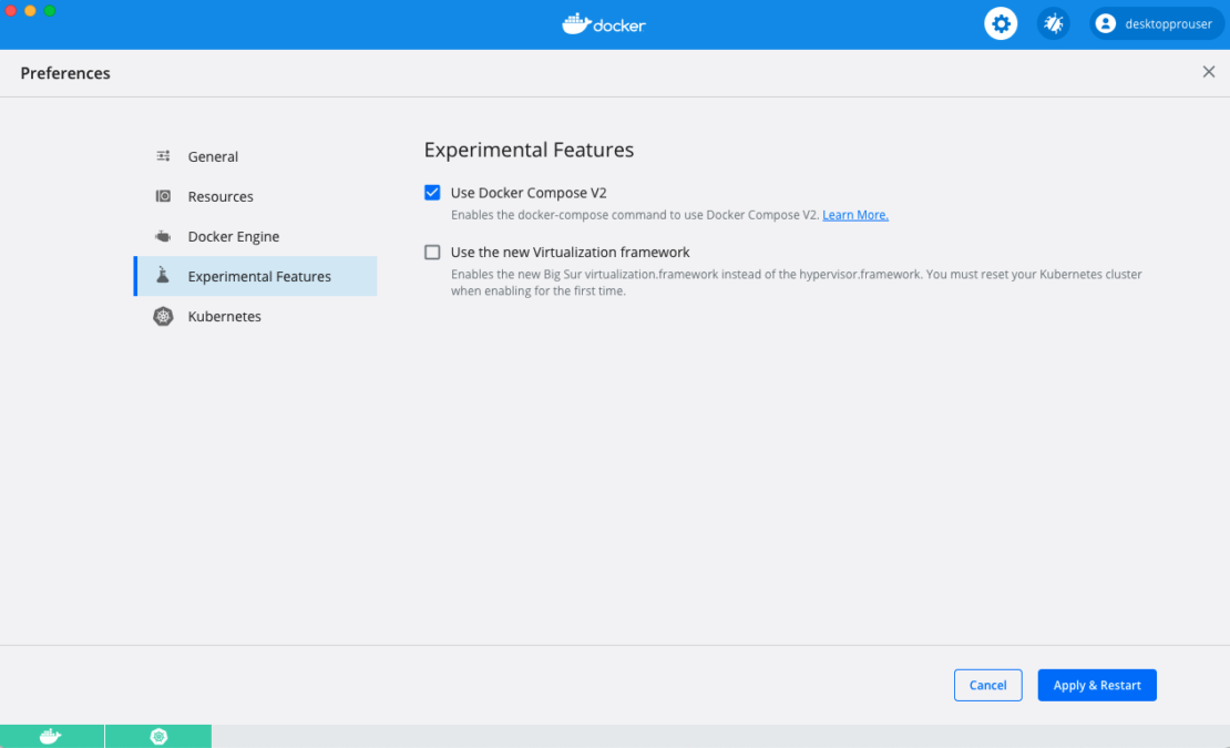 Compose V2を使用して問題が発生した場合は、コマンドを実行するか docker-compose disable-v2 、Dockerデスクトップの実験的機能を使用してオフにしてください。 新しい 'compose' コマンドに関するフィードバックを、 Compose-CLI GitHub リポジトリで問題を作成してお知らせください。