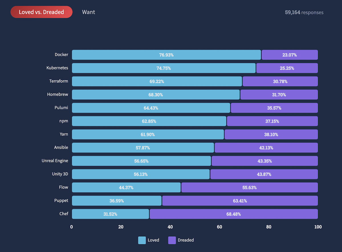スタックオーバーフローの2022年開発者調査から、いくつかの主要なテーマに気づきました。 まず、現在、業界全体で使用されているテクノロジーは非常に多様です。 第二に、開発者はこれらのテクノロジーが不可欠であり、非常に愛されているため、これらのテクノロジーを使用しています。 第三に、チームがその利点をよりよく理解するにつれて、コンテナの人気はさらに高まっています。