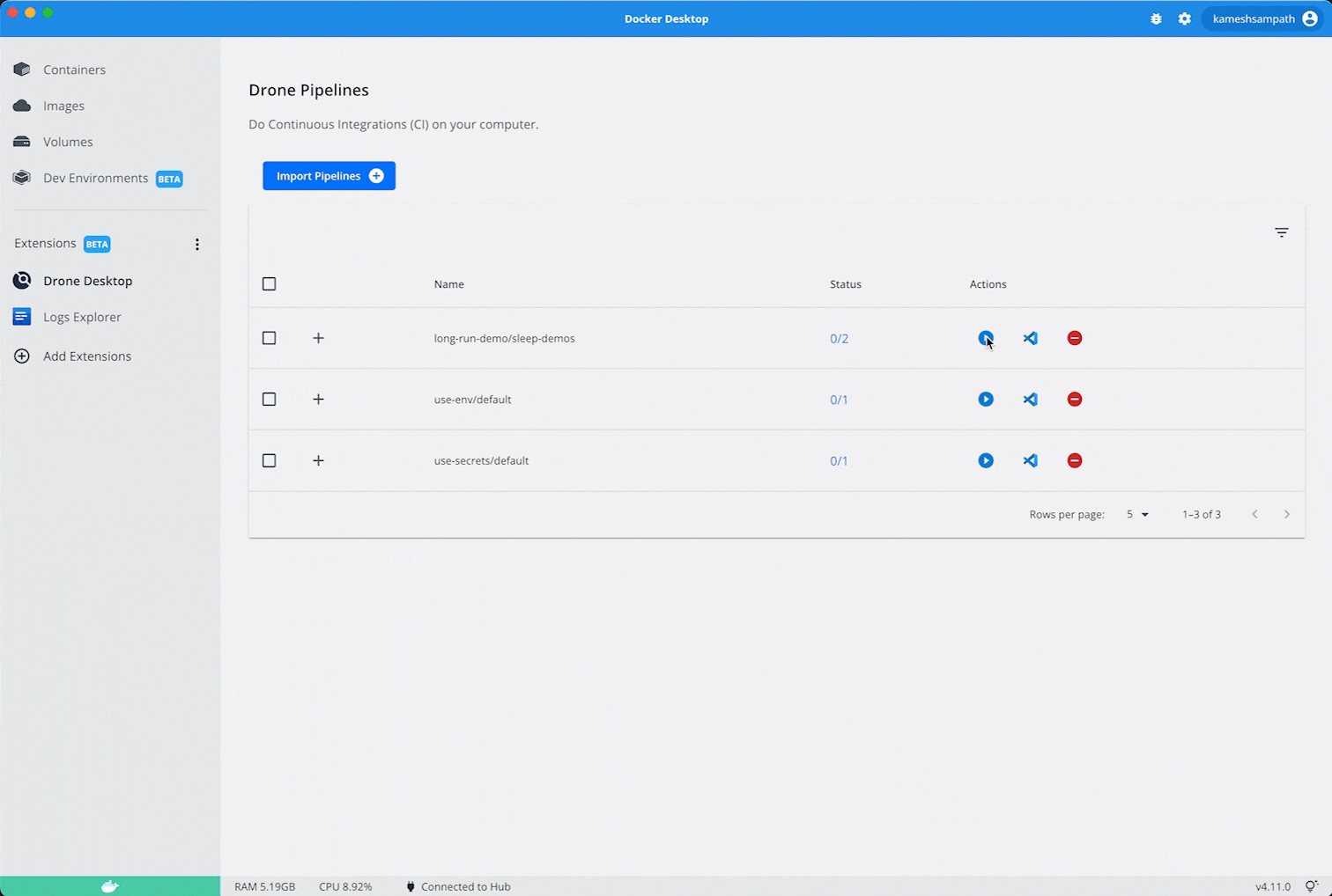 チームと共有する前に、コンテナーに適したパイプラインを構築してテストする必要がありますか? または、ラップトップで継続的インテグレーション (CI) を実行したり、失敗したテストをデバッグしたりする機能が必要ですか? 答えが「はい」の場合、 ドローンCI拡張機能 が役立ちます。 この拡張機能を使用すると、次のことができます。