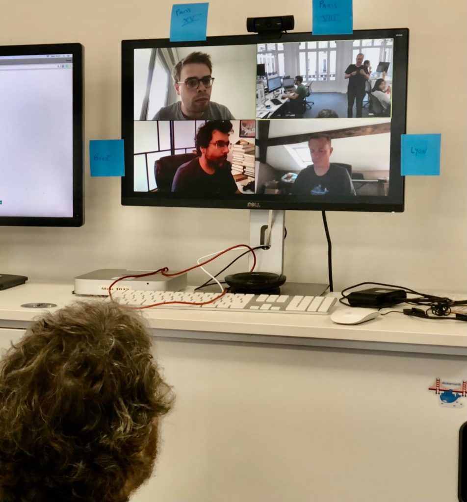 リモートエンジニアは気分が良くなりましたが、オフィスにはまだ理解できない生活があり、 これがワームホールを導入したときです。 ワームホールはかなりローテクで、モニター、カメラ、スピーカーがオフィスで一日中開いています。 リモートエンジニアはそれに接続し、オフィスを眺めることができ、雰囲気を感じ、一般的な会話を聞くことができます。 彼らはまた、「直接」コミュニケーションのためにワームホールに近づくために誰かをたるませることができます。 私たちが自宅で仕事を始める前にオフィスを出るまで、彼らはかなり人気がありました。