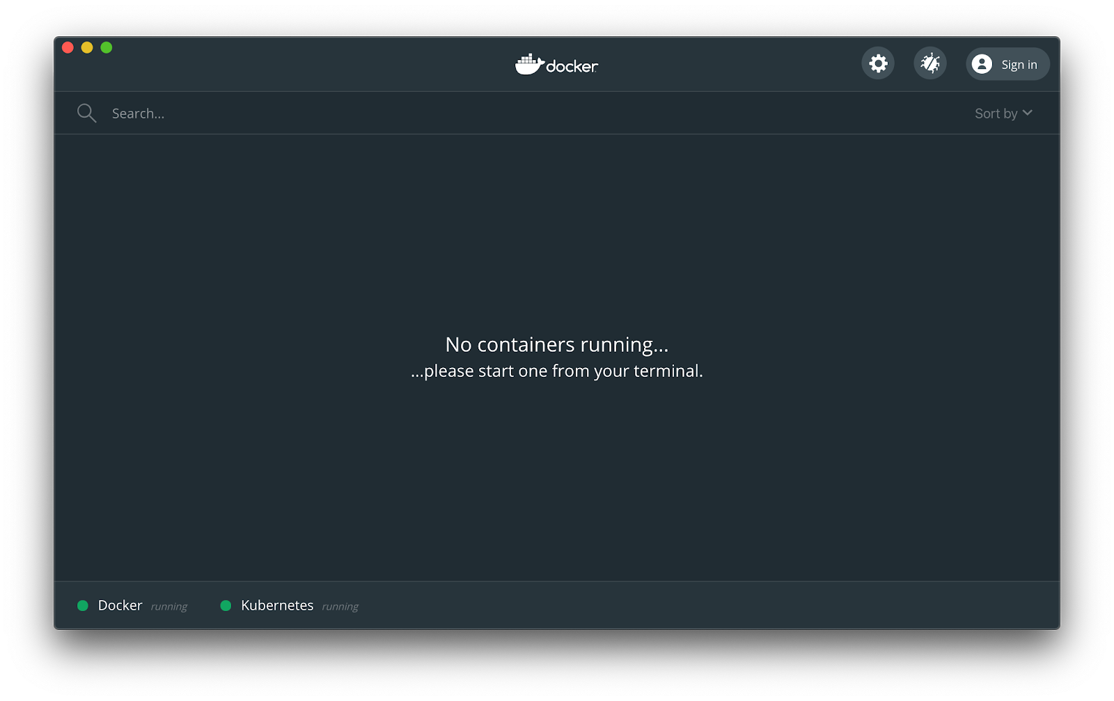 さて、この記事の冒頭で、Docker Desktop UI について説明しました。 その時点では、コンテナは稼働していませんでした。 Windowsの通知領域(またはシステムトレイ)またはMacのメニューバーにあるクジラのアイコン(
