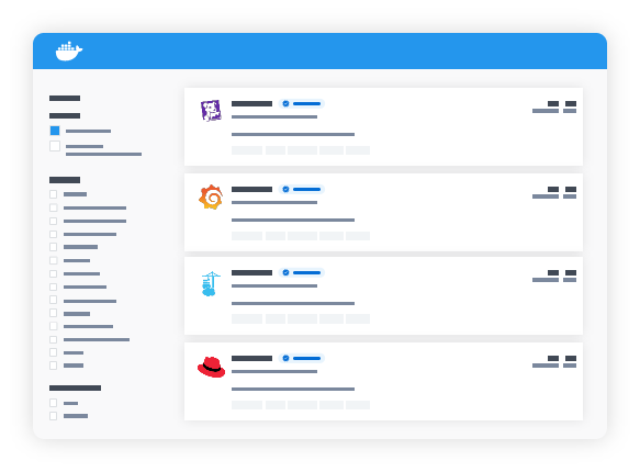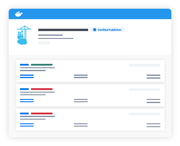 Docker リポジトリと名前空間に Docker 検証済み発行元がバッジを付けると、ソフトウェアの信頼できるソースであることが顧客に表示されます。 優先検索結果と自動セキュリティスキャンにより、カスタマーエクスペリエンスが向上します。